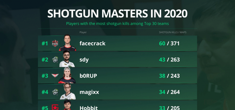 Портал HLTV.org продолжает делиться в Twitter интересной статистикой из профессиональных матчей CS:GO за 2020 год. На этот раз был опубликован топ игроков по убийствам с дробовиков.Примечательно, что в топ-5 попали сразу 4 киберспортсмена из СНГ.Лидером по килам с дробовиков (60...
