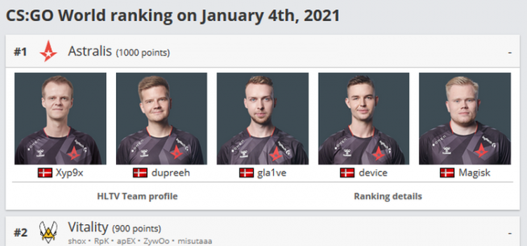 Опубликован первый рейтинг сильнейших команд мира в 2021 году от HLTV.org. Несмотря на отсутствие крупных турниров по CS:GO за этот период, в топ-30 произошли изменения: Virtus.pro поднялась на одну строчку и обошла Complexity Gaming, а mousesports опустилась на 10-е место,...
