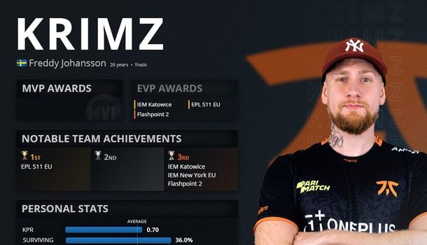 Шведский киберспортсмен Фредди KRiMZ Йоханссон стал 17-м в списке лучших игроков 2020 года в CS:GO по версии HLTV.org. В марте Йоханссон выиграл ESL Pro League Season 11 в составе Fnatic, эта победа стала для него единственной за год. Последним турниром...