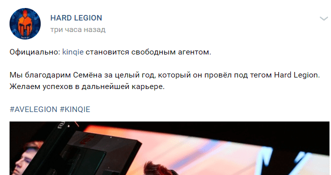 Организация Hard Legion объявила, что она официально прекращает сотрудничество с Семеном kinqie Лисицыным. 21 октября они отправили его на скамейку запасных, а сегодня объявили, что он свободный агент. Из оригинального состава Hard Legion остался лишь svyat, менеджмент клуба решил сделать...