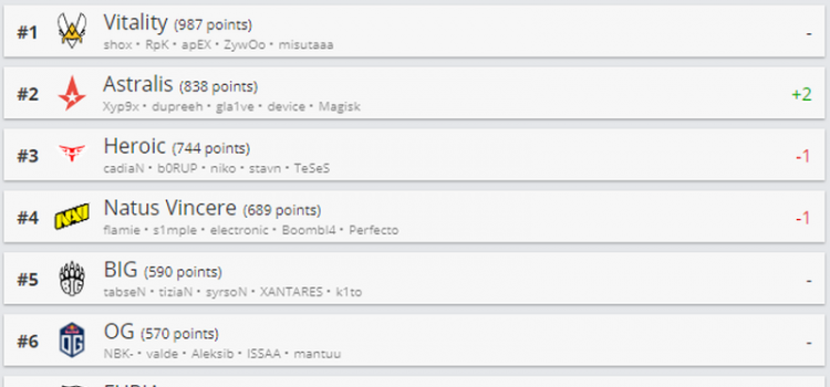 Virtus.pro прибавила пять пунктов и заняла 11-ю строчку в рейтинге лучших команд по CS:GO в мире по версии HLTV.org. Лидером списка осталась Team Vitality, а на втором месте расположилась Astralis, сместившая Heroic на одну позицию ниже. Natus Vincere покинули топ-3...