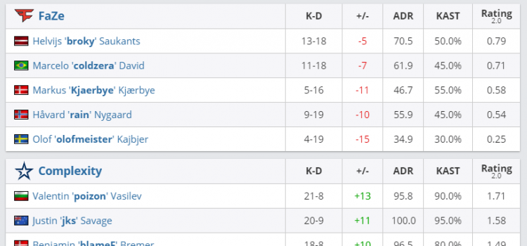 Команда Complexity разгромно переиграла FaZe Clan на первой карте Inferno со счетом 16:4. Хорошо себя проявили poizon и jks, набив 20+ фрагов. Матч проходит в рамках DreamHack Masters: Winter 2020, проигравшая команда из пары FaZe Clan и Complexity покидает турнир и...