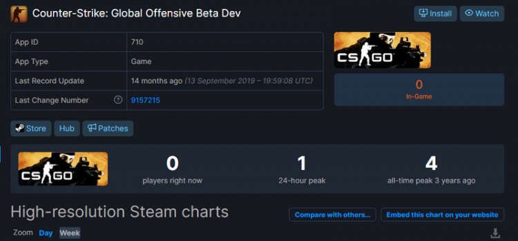 Трекер для отслеживания онлайна Steam Database зарегистрировал активность как минимум четырех разработчиков в Counter-Strike: Global Offensive Beta Dev. Это тестовая версия CS:GO для геймдизайнеров из студии Valve. Возможно, Valve готовит масштабное обновление игры или операцию, о чем ранее упоминали инсайдеры....