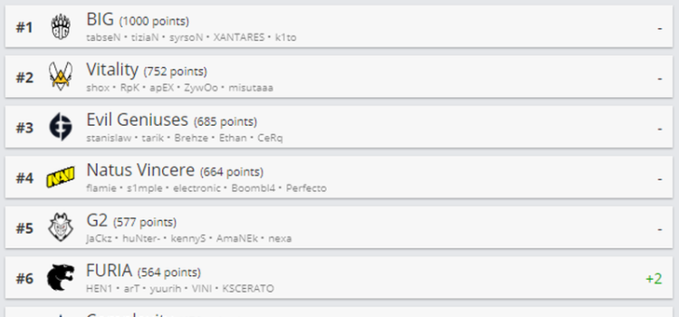 Astralis потеряла шесть пунктов и заняла 17-е место в рейтинге лучших команд по CS:GO в мире по версии HLTV.org. Лидерами списка остались BIG, Team Vitality и Evil Geniuses. FURIA Esports и Complexity Gaming прибавили по две позиции и заняли 6-7 места....