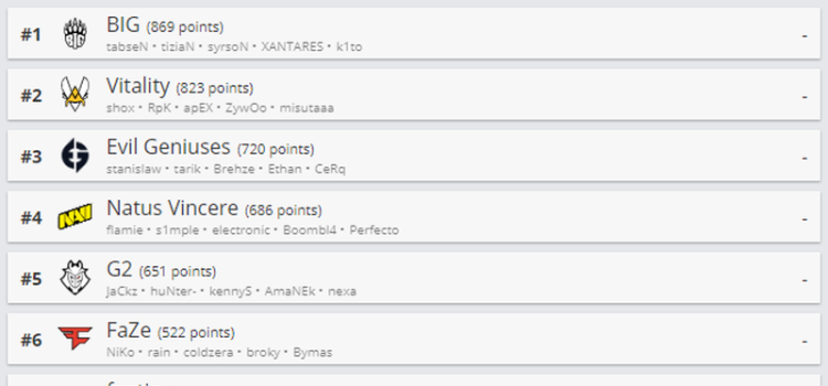 Team Spirit потеряла одну позицию и заняла 19-е место в рейтинге лучших команд по CS:GO в мире по версии HLTV.org. Команда из СНГ уступила GODSENT, которая поднялась на 18-ю строчку. Лидерами списка остались BIG, Team Vitality и Evil Geniuses. Положение команд...