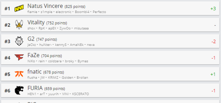 Natus Vincere поднялись на три строчки и заняли первое место в рейтинге лучших команд по CS:GO в мире по версии HLTV.org. Предыдущий лидер списка G2 Esports опустился на третью позицию. FaZe Clan потеряла пункт и оказалась на четвертом месте. Fnatic поднялась...