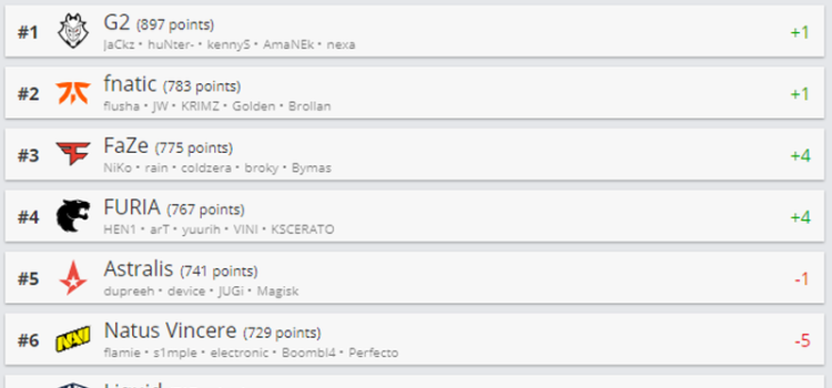Natus Vincere потеряли пять пунктов в рейтинге лучших команд по CS:GO в мире по версии HLTV.org. Команда уступила лидерство G2 Esports и остановилась на шестой строчке списка. В топ-3 рейтинга также вошли Fnatic и FaZe Clan. Команда Николы NiKo Ковача прибавила...