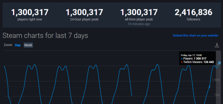 CS:GO обошла Dota 2 по рекордному пиковому онлайну за все время. По данным SteamDB, вечером 17 апреля в шутер от Valve одновременно играли 1,3 млн человек. Лучший показатель MOBA от того же разработчика составляет 1,295 млн пользователей. Предыдущий рекорд CS:GO установила...