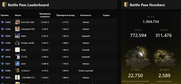 Портал stratz.com опубликовал статистику Battle Pass и прокачки компендиума среди всех владельцев компендиума. Самый большой уровень Battle Pass набрал принц Саудовской Аравии Абдулла ибн Салман Абдул-Азиз Аль Сауд. У него есть компендиум 54 865 уровня, потратив на это более 22...
